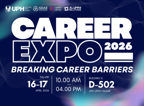 Career Center UPH mengundang Anda untuk mengikuti Career Expo UPH 2026, yang menghadirkan lebih dari 25 perusahaan dari berbagai industri. Melalui kegiatan ini, peserta dapat memperoleh informasi lowongan magang maupun full-time, memperluas jaringan profesional, serta berinteraksi langsung dengan recruiter perusahaan.